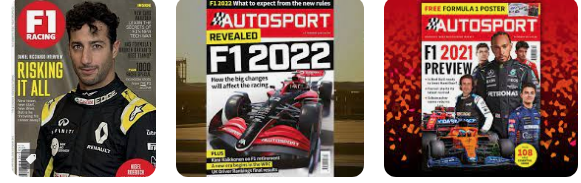 1.The colour palette they use is usually red or yellow with a bit of black2. the main image would normally show a picture of a f1 car or the driver